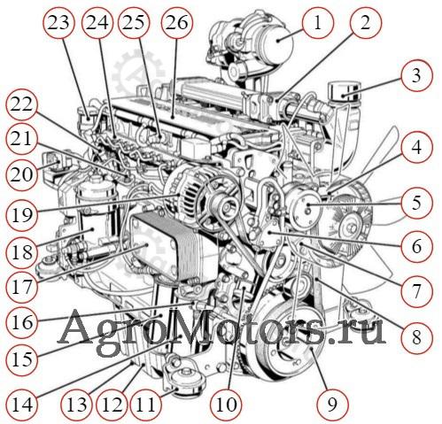 Deutz TСD 2012 L4 4V - это 4-тактный турбомотор (прямой впрыск) с четырьмя цилиндрами. Вал имеет горизонтальное положение. Конструкция TСD 2012 L04 4V: блок цилиндров из чугуна; механизм баланса массы с 2 валами, встроенный в картер; механический инжектор; система охлаждения, использующая жидкость; головки цилиндров из чугуна.