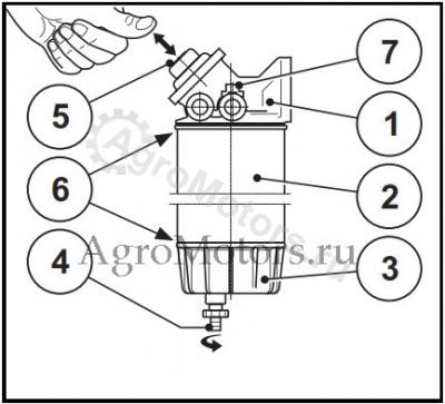 - Установить соединение (4) с топливным фильтром.