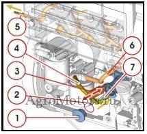 - Закрыть запорный топливный кран (если бак расположен вверху) (подающий провод (7)).